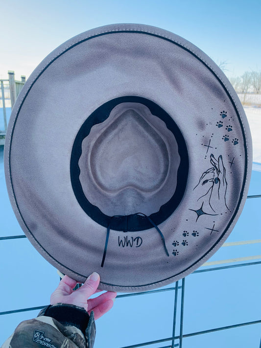 Hand Burned Heart Rancher Hat with "Sound of your Paws" Design