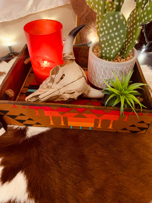 Hand Burned "Floral and Cowhide" Lazy Susan Turntables