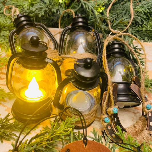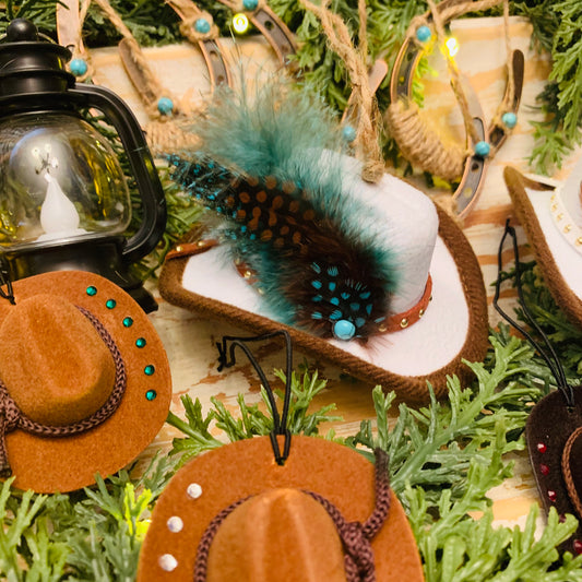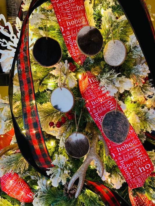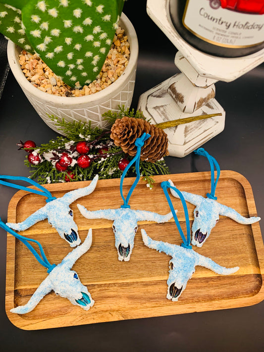 "Winter Skies" Bull Skull and Cowhide Rug Ornaments -9pc Set