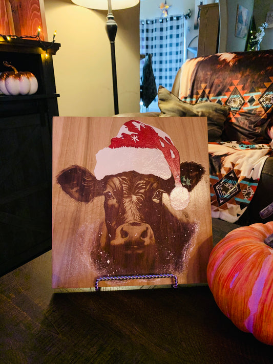 Hand Burned and Hand Painted "Christmas Highland Cow" Design