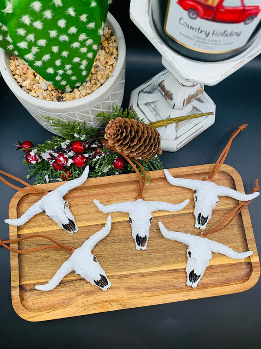 "Snow Drift" Bull Skull and Cowhide Rug Ornaments -9pc Set
