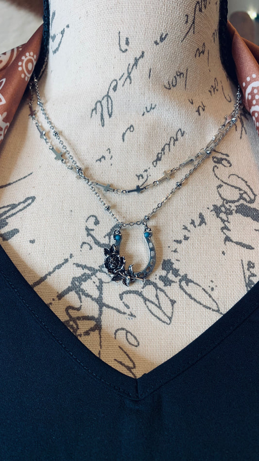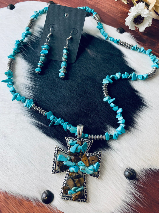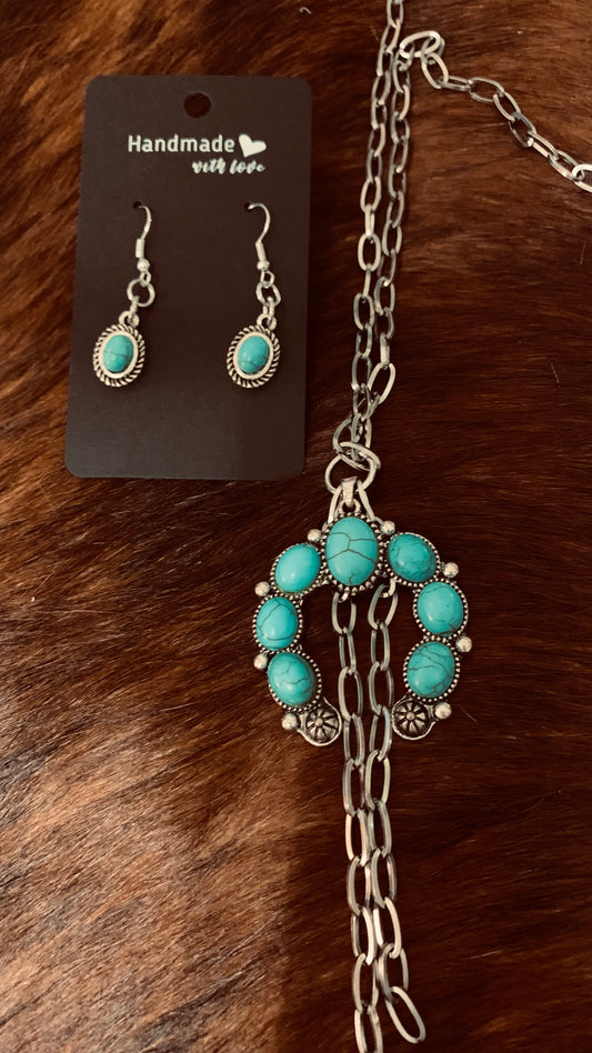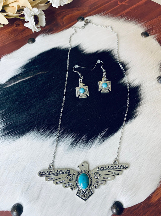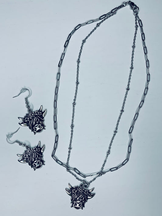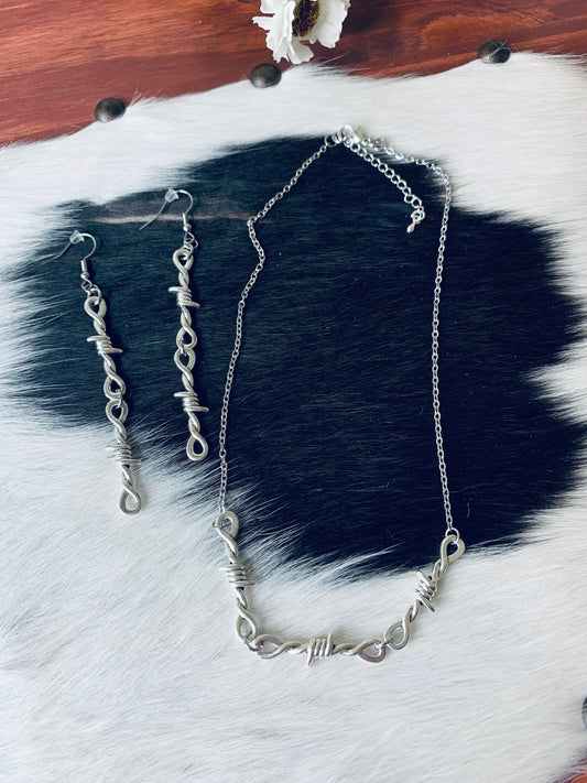 Antique Silver Barbed Wire Necklace & Double Drop Earring Set