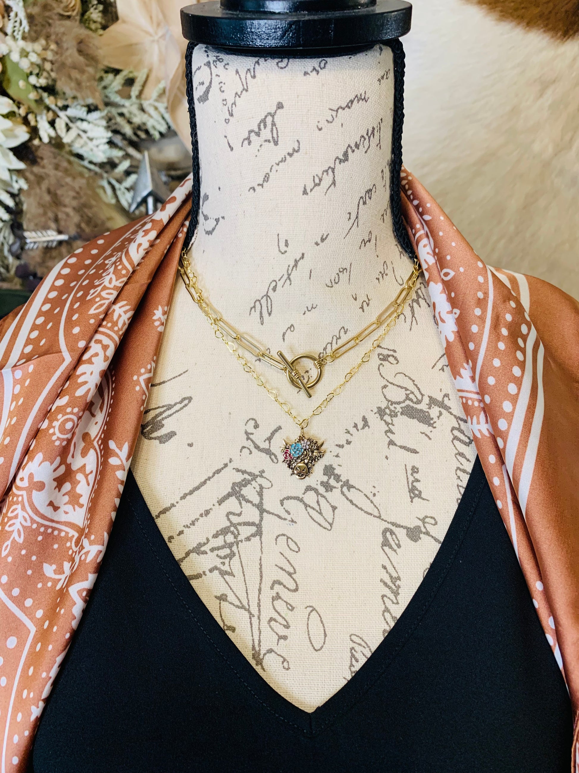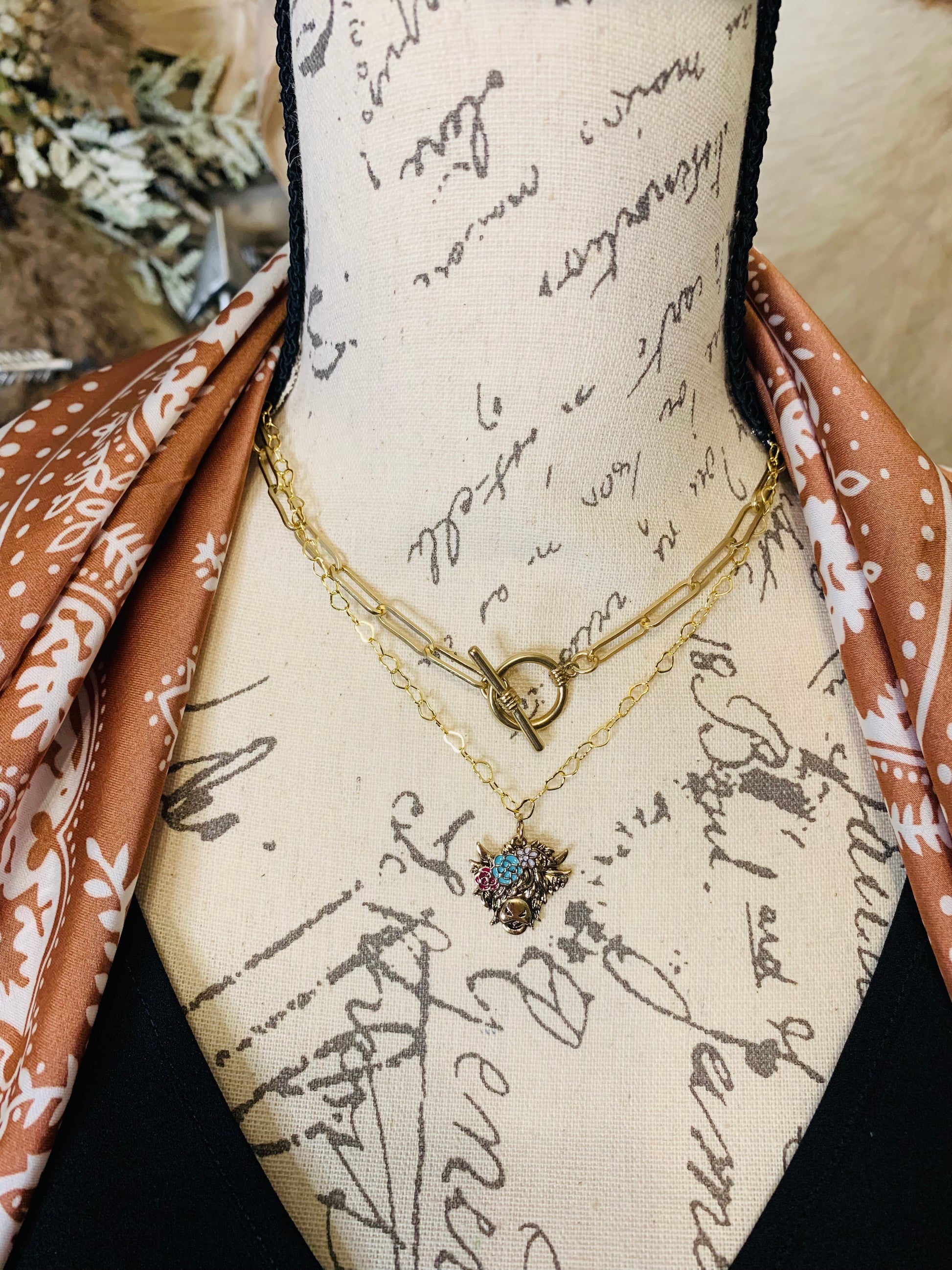"Gold Highland Cow" Necklace Set