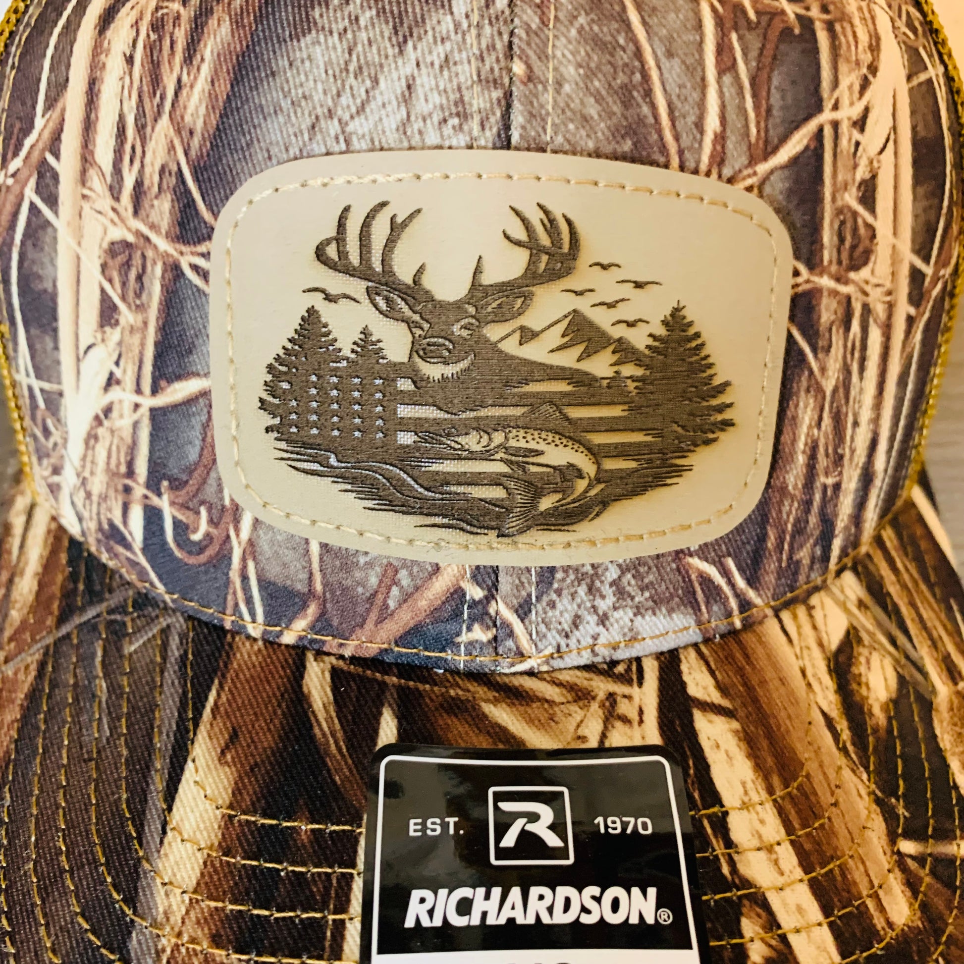 This Richardson Original 112P Trucker Snapback hat features a stylish two-tone design in realtree camo and brown. The laser engraved leather patches and heat press bonding make it a top-quality accessory. Perfect for gifting or as a statement piece, this hat is a must-have item. Add it to your collection today!