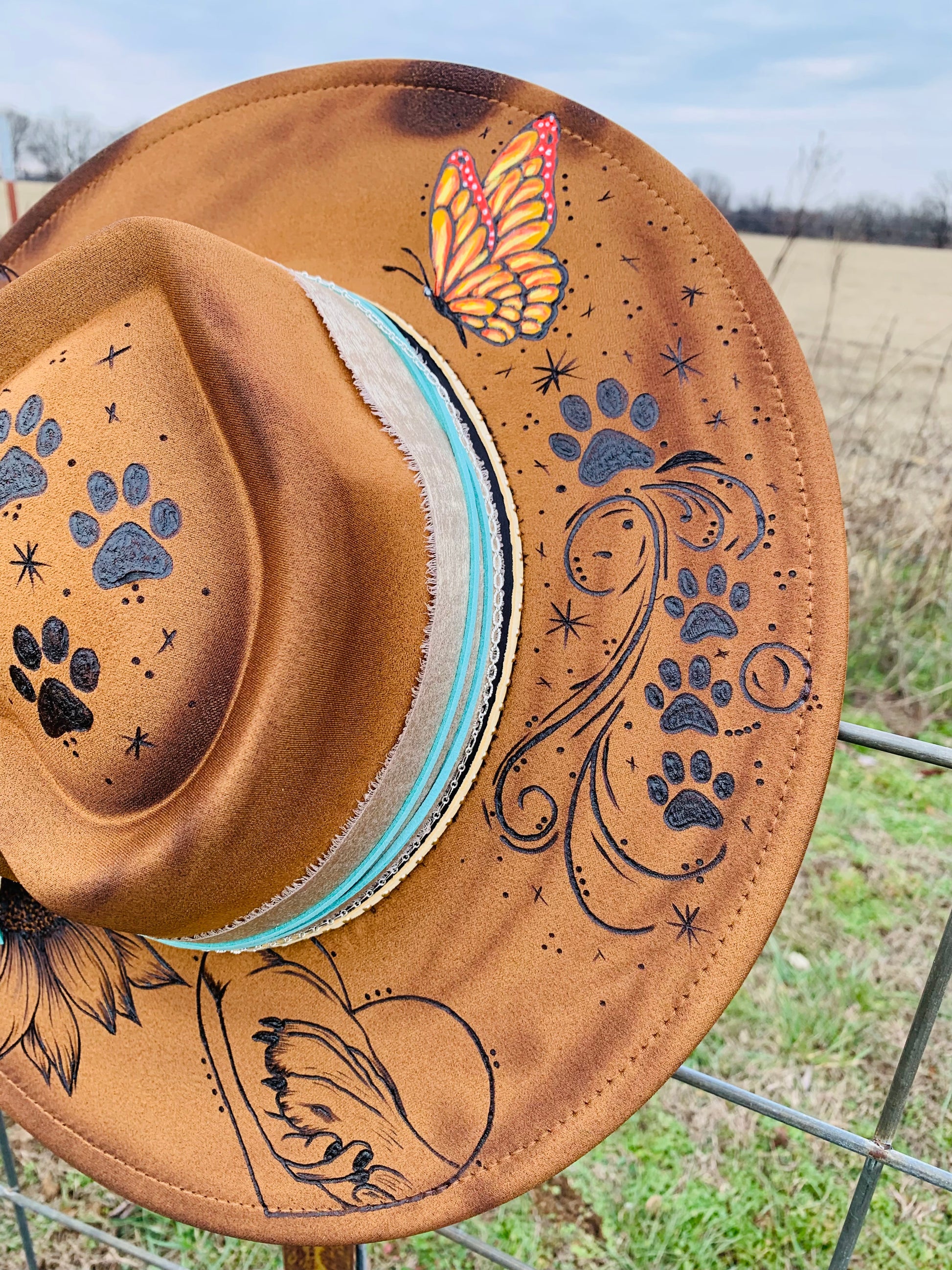 Hand Burned Heart Rancher Hat with "Paws"