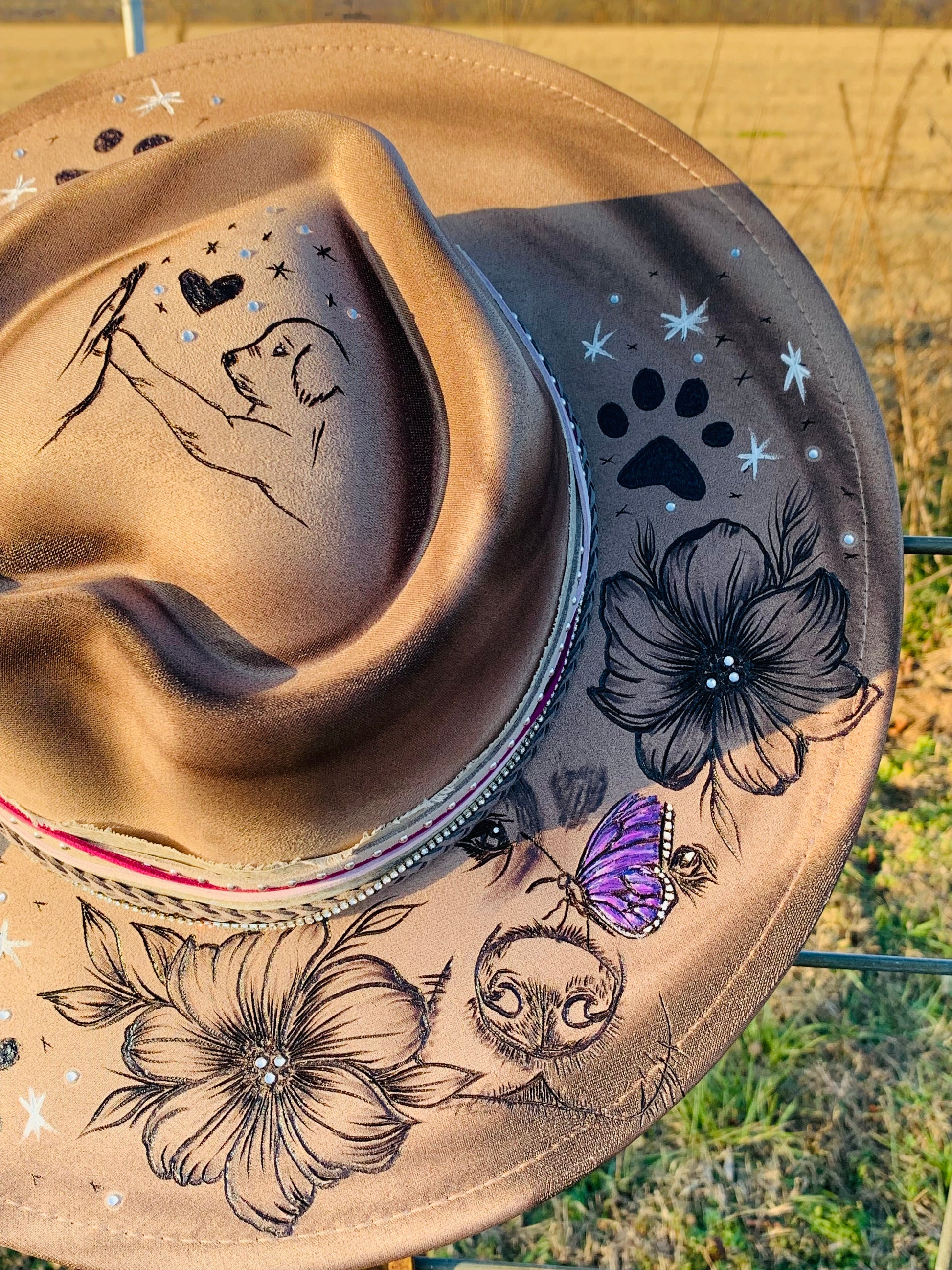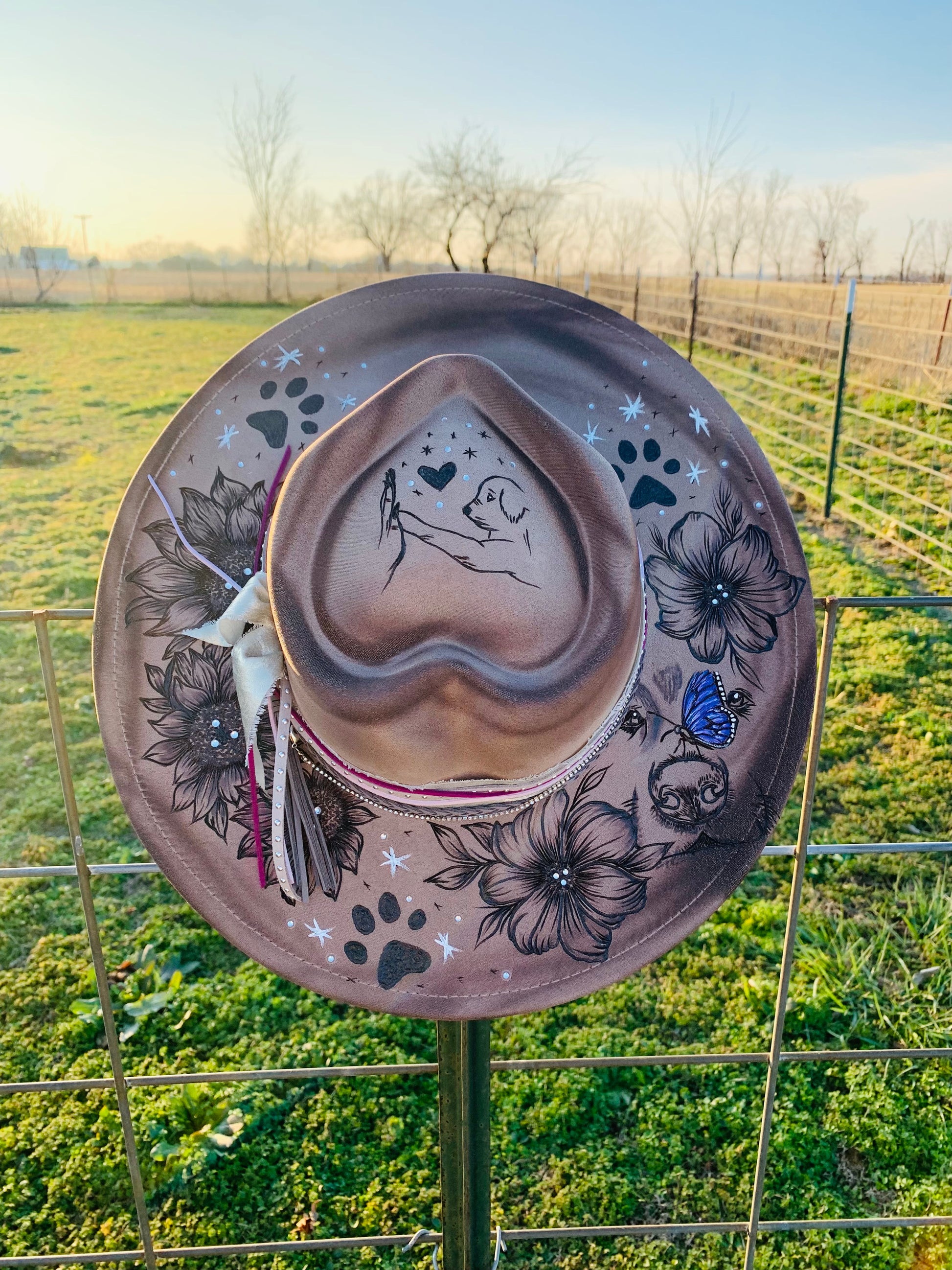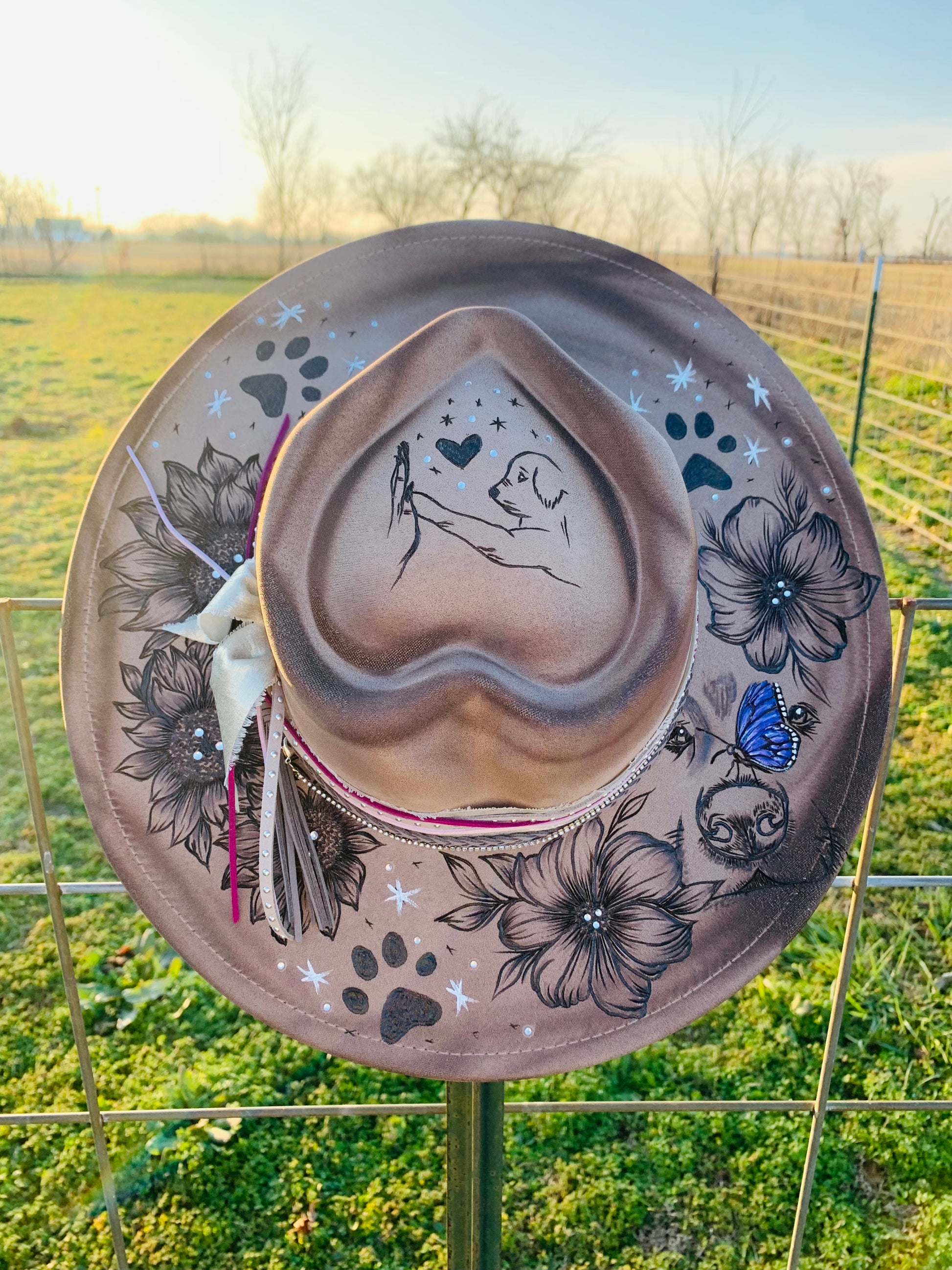 Hand Burned Heart Rancher Hat with "Dog Paws"