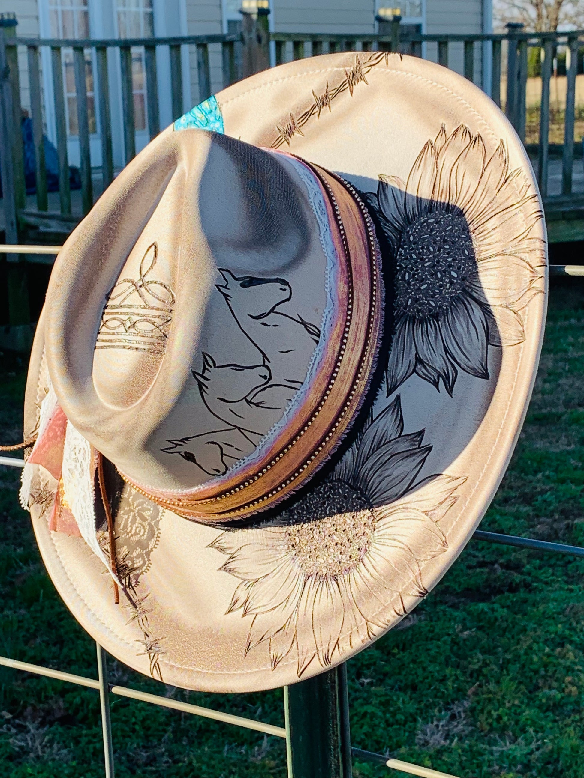 Hand Burned Rancher Hat "A Horses Spirit" Design
