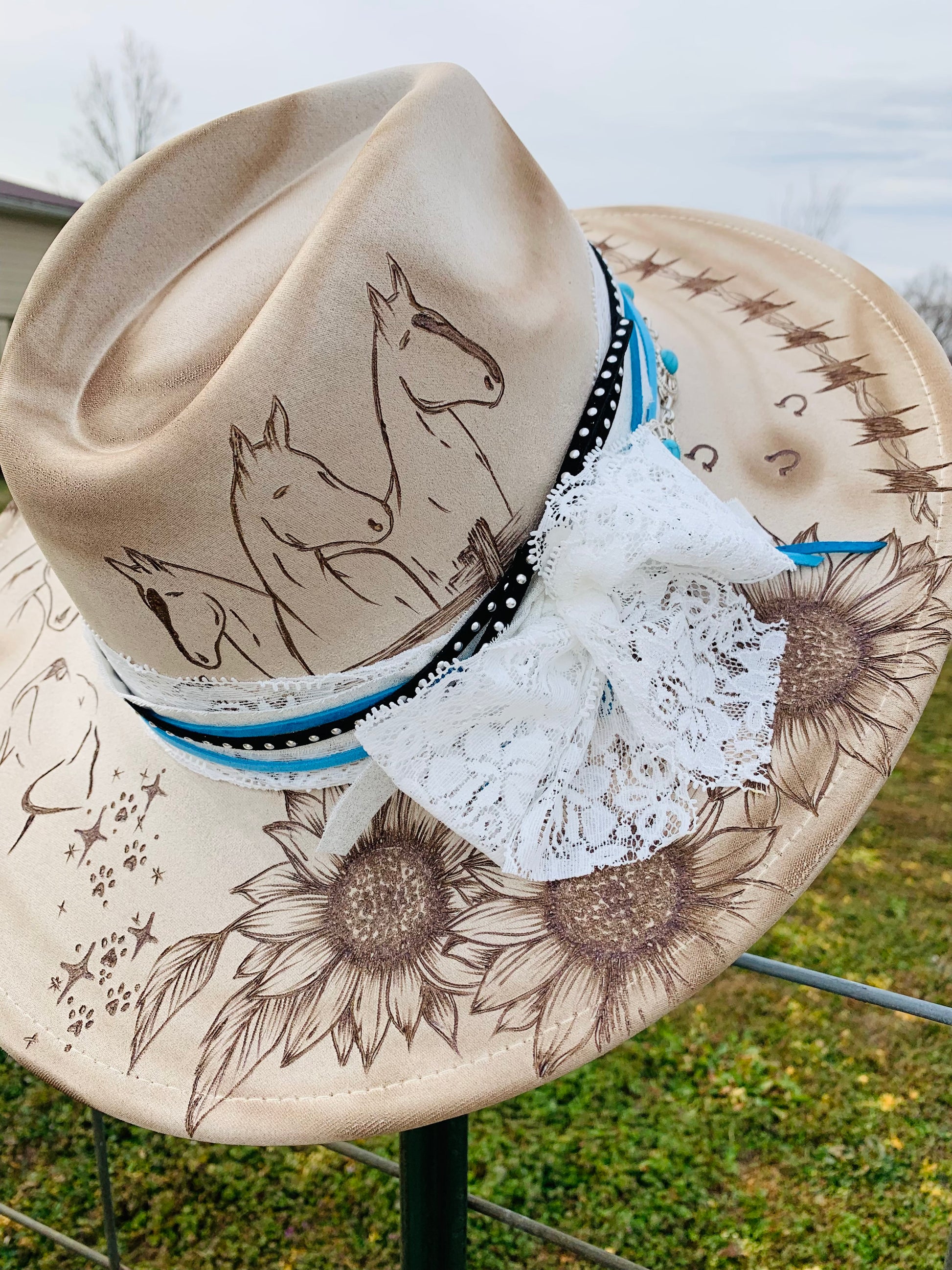 Hand Burned Rancher Hat "I'll Never Walk Alone" Design