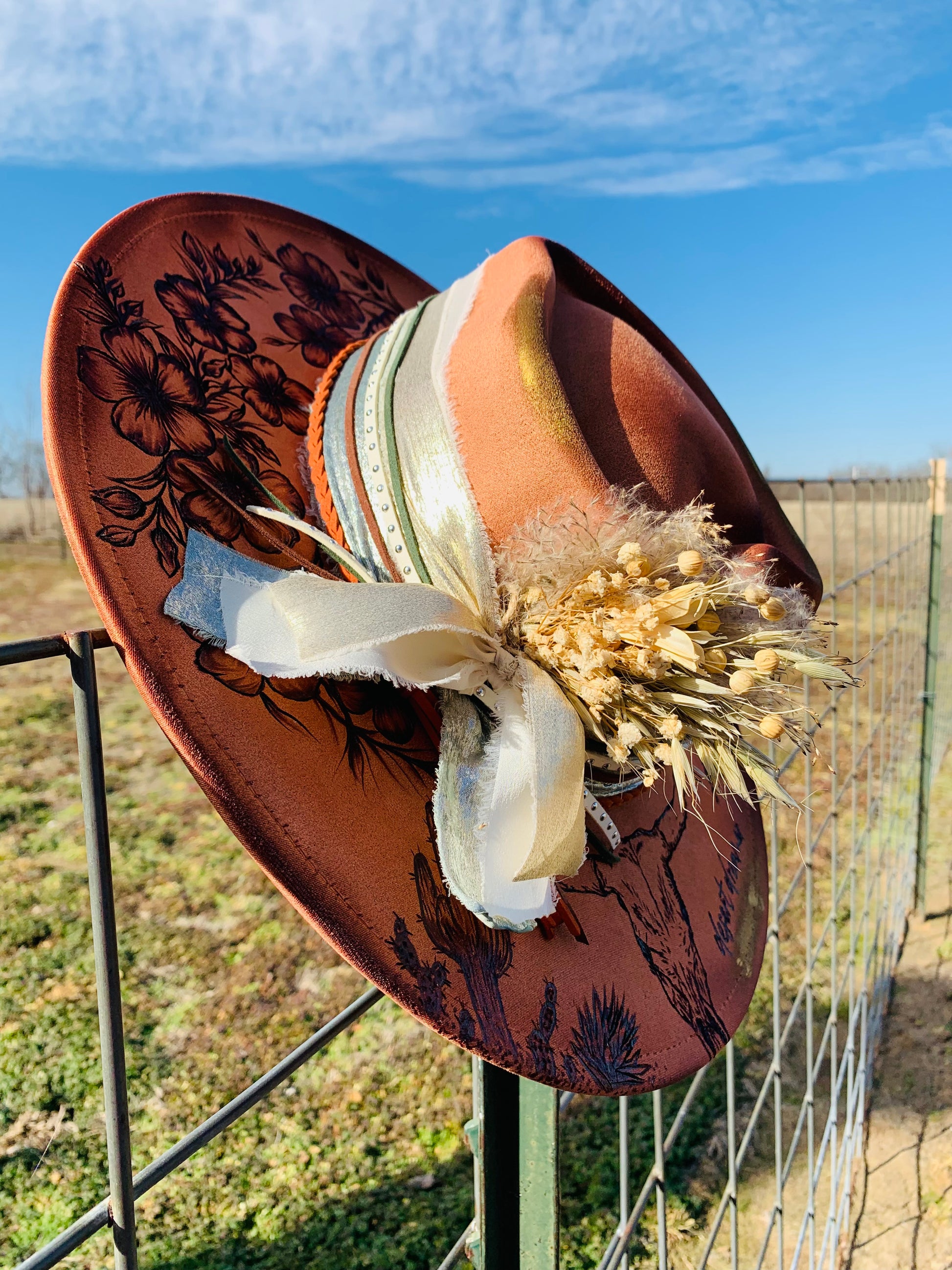 Hand Burned Heart Rancher Hat with "Desert Dreamer" Design