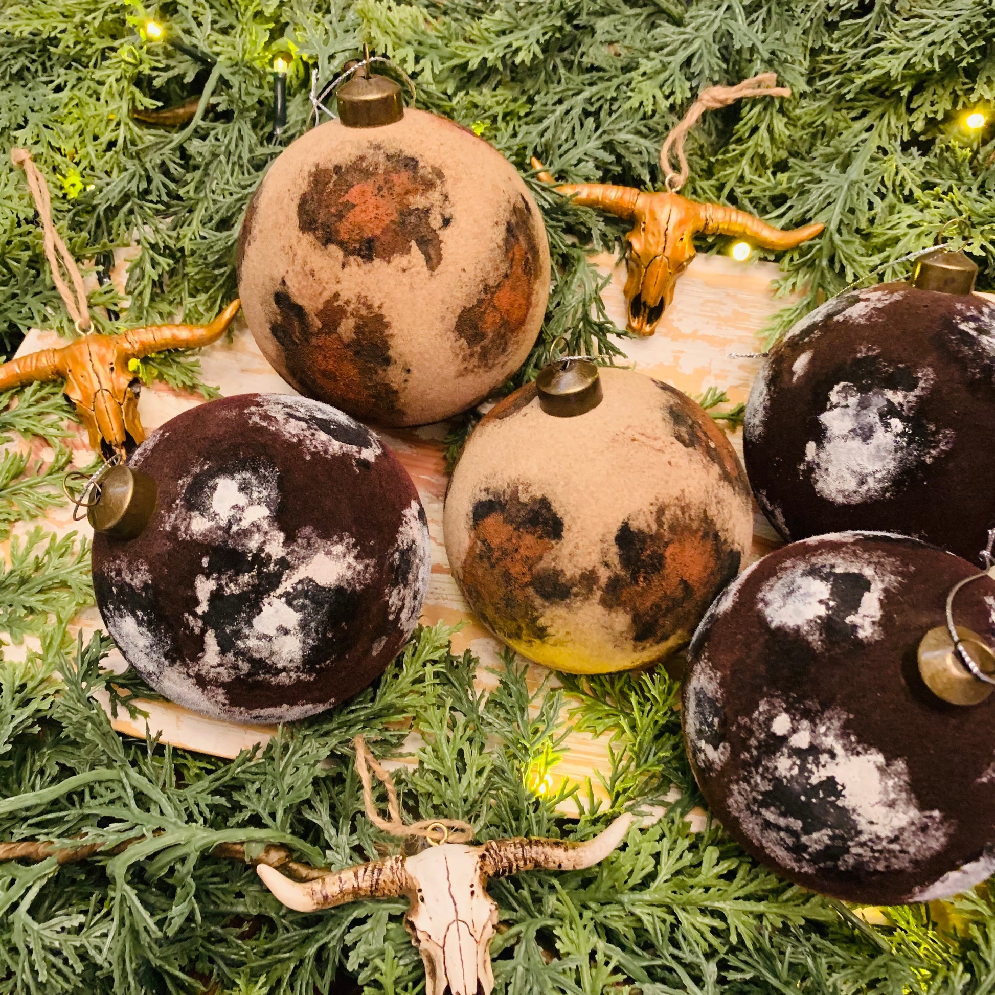 Transform your Christmas tree into a Western wonderland with this exceptional 9-piece Rustic Longhorn Ornament set. Featuring hand-painted cowhide detailing on velvet plastic ball ornaments in rich dark brown and warm tan tones, plus five striking longhorn skull designs, this collection celebrates cowboy spirit and ranch heritage. The shatter-proof construction ensures durability season after season, making these ornaments both beautiful and practical for families with children or pets. Ideal for Western enthusiasts seeking distinctive holiday décor that captures authentic frontier charm while maintaining lasting quality.
