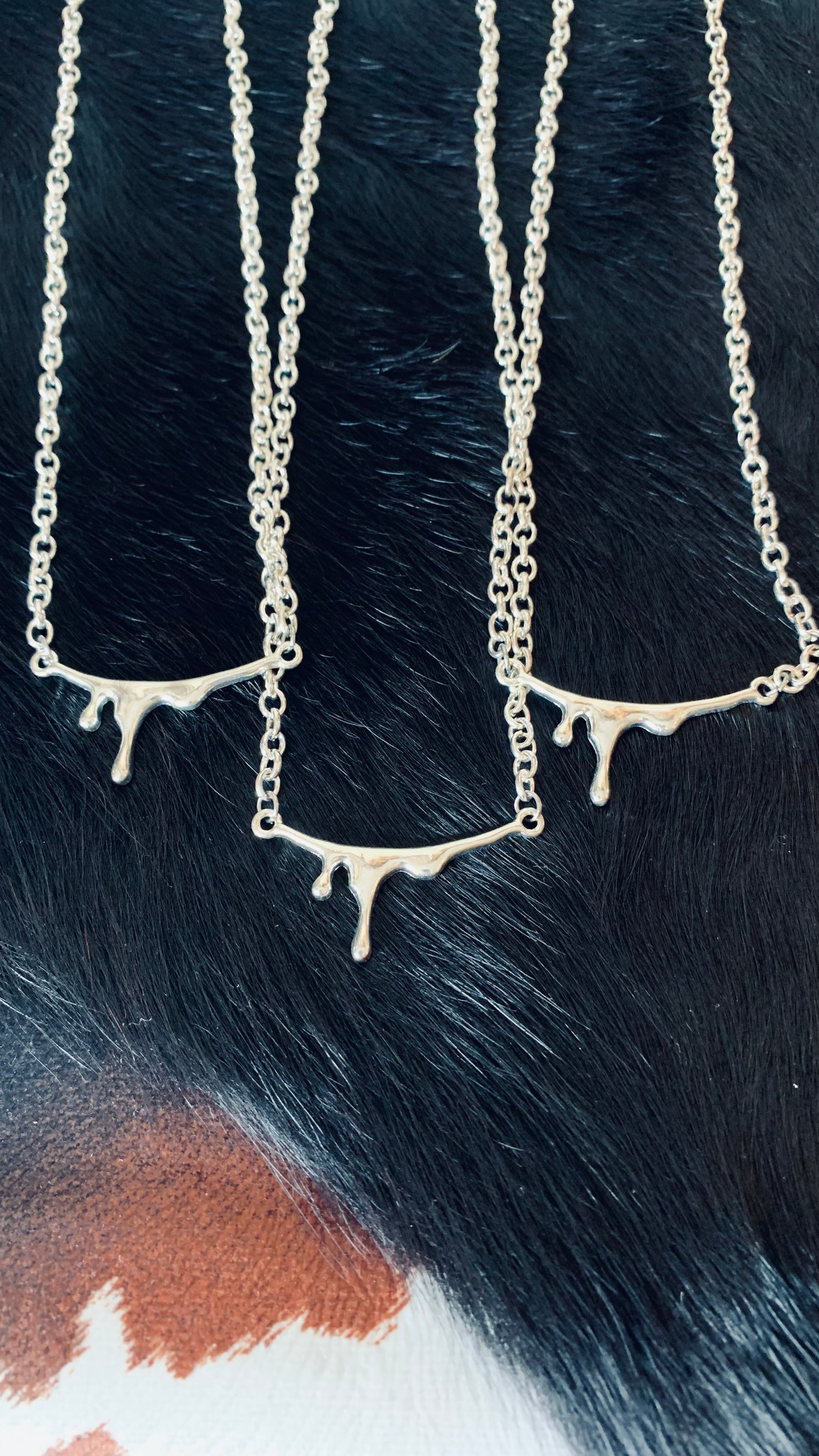 Elevate your style with the Silver DRIP Necklace, crafted with a sleek 18" chain that delivers an edgy and modern look. This standout piece effortlessly adds attitude and sophistication to any outfit, making it a must-have accessory for those who love bold, contemporary jewelry.